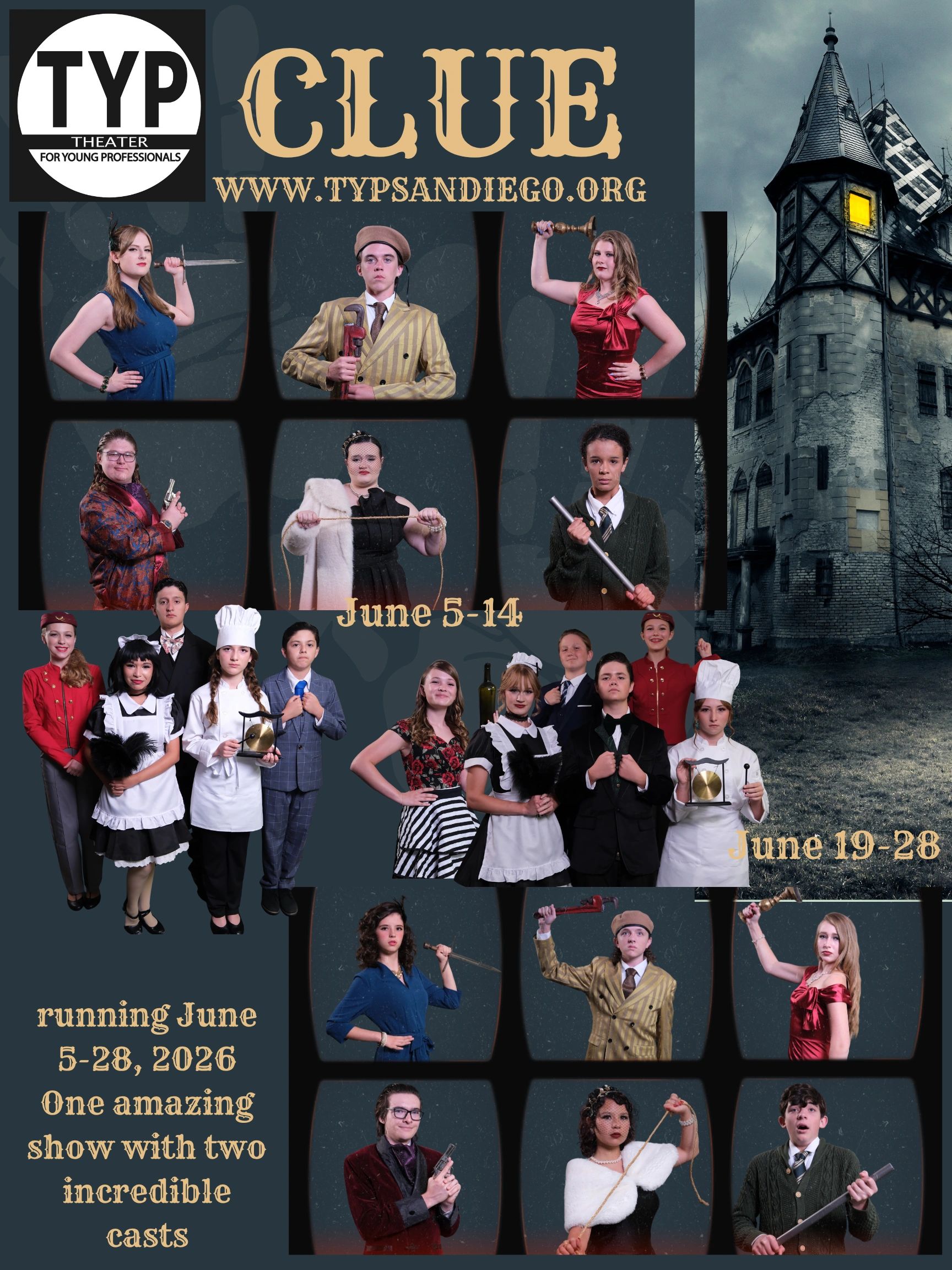 Hello! And welcome to TYP, La Mesa's premiere youth acting school and production company that specializes in musicals, plays and short films. Your generous support and contributions will enable our nonprofit to fund its mission of quality performances and training in order to grow the arts in our community!